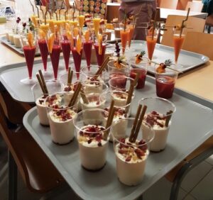 Dan smo zaključili s pripravo brezalkoholnih koktajlov in sadnih napitkov, kjer smo izbirali sezonska živila. Druga skupina je s profesoricami pripravljala dekoracije in krasila pogostitveni prostor. Morali smo pošteno pohiteti da nam je uspelo do dogovorjene ure. Zaključili smo v prijetnem druženju s profesorji in dijaki, ki so občudovali delo udeležencev.